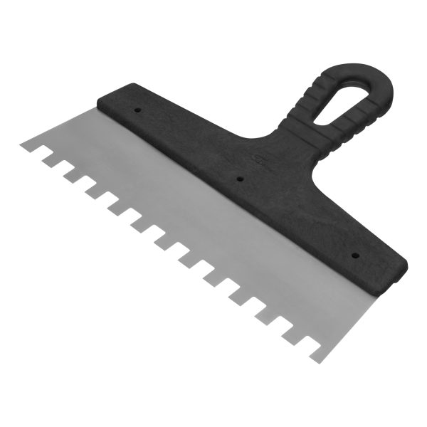 Шпатель из нержавеющей стали, 250 мм, зуб 10 х 10 мм, пластмассовая ручка Сибртех