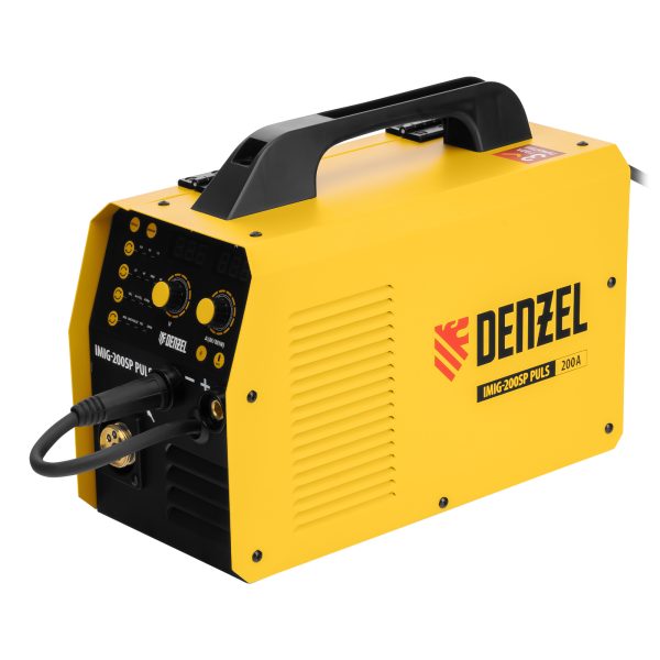 Инверторный аппарат полуавтоматической сварки Denzel IMIG-200SP Pulse совместим с катушками массой до 5 кг, работает со сварочным током до 200 A, продолжительность включения составляет 60%. Предназначен для сварки в среде защитных газов (MIG/MAG), сварки порошковой проволокой (FCAW), покрытым электродом (MMA), а также аргонодуговой сварки неплавящимся электродом (Lift TIG). Горелка TIG не входит в комплект поставки. При включенном режиме MIG PULSE доступна сварка пульсирующим постоянным током деталей или изделий из алюминиево-магниевого, а также алюминиево-кремниевого сплава.