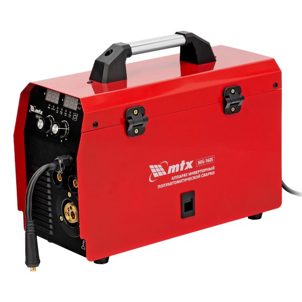 Инверторный аппарат полуавтоматической сварки MTX MIG-160S 94301, предназначенный для сварки на максимальном токе до 160 А, имеет продолжительность включения 60% и совместим с катушками весом до 5 кг. Используется для работы со сталями и черными металлами. Сварочный аппарат изготовлен с использованием передовой технологии IGBT, позволяющей получать стабильный сварочный ток на выходе. Аппарат имеет высокий КПД при низком энергопотреблении, способен работать при пониженном до 180 В напряжении.