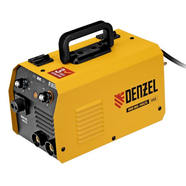 Инверторный аппарат полуавтоматической сварки Denzel Mini MIG-140LFG 94305 предназначен для выполнения сварочных работ при постоянном токе до 140 A и продолжительности включения 60%. Доступные режимы: ручная дуговая сварка покрытым электродом (MMA), сварка в среде защитного газа (MIG/MAG), сварка порошковой (или флюсовой) проволокой диаметром 0,8 / 0,9 / 1, мм (FCAW), а также аргонодуговая сварка неплавящимся электродом (Lift TIG). Горелка TIG не входит в комплект поставки и приобретается отдельно.