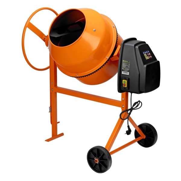 - Продуманная конструкция — увеличенный диаметр колес обеспечивает устойчивость бетоносмесителя во время работы, а также упрощает его перемещение по рабочей площадке.