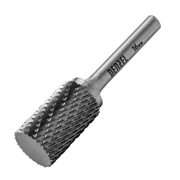 Твердосплавная борфреза Denzel 72013 с цилиндрической рабочей частью (тип A), диаметром 16 мм, используется для работ по металлу (закаленной и нержавеющей стали, латуни, меди, бронзе, чугуну, титану). Подходит также для обработки искусственного камня и металлокерамики. Предназначена для завершающей обработки и подгонки форм и поверхностей: шлифовки, зачистки сварных швов, удаления заусенцев, снятия фасок, разделки кромок. Оснастка устанавливается на прямошлифовальную машину или дрель.