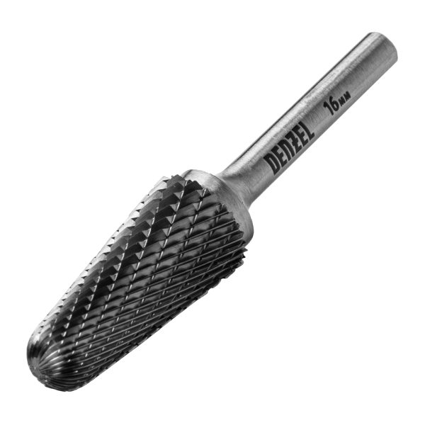 Твердосплавная борфреза Denzel 72073 с конической закругленной режущей частью (тип L), диаметром 16 мм, предназначена для выполнения работ по металлу. Используется для шлифовки, снятия фасок, удаления заусенцев, зачистки сварных швов. восстановления гравировки. Оптимальна для обработки труднодоступных мест. Оснастка устанавливается на дрель или прямошлифовальную машину, подходит для работы с закаленной и нержавеющей сталью, чугуном, бронзой, медью, латунью, титаном, а также металлокерамикой и искусственным камнем.