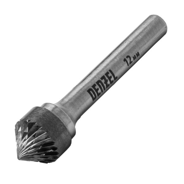 Твердосплавная борфреза по металлу Denzel 72058 с рабочей частью-зенкером с вершиной 90° (тип K), диаметром 12 мм, устанавливается на дрель или прямошлифовальную машину. Используется для обработки закаленной и нержавеющей стали, латуни, бронзы, меди, чугуна, титана, а также металлокерамики и искусственного камня. Оптимальна для снятия фасок и заусенцев, обработки кромок, угловых пазов, краев отверстий.