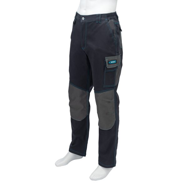 Профессиональные рабочие брюки Gross 90439 размера XL рассчитаны на рост 180-186 см. Защищают пользователя от общих производственных загрязнений, нетоксичной пыли, ветра и незначительных механических воздействий. Подойдут для выполнения различных видов работ в теплое время года или в отапливаемом помещении. Выполнены в практичном темно-сером цвете из ткани с 97-процентным содержанием хлопка и 3-процентным содержанием спандекса. За счет наличия хлопковых волокон в составе ткань прекрасно пропускает воздух и приятна на теле, а спандекс делает ее более эластичной, поэтому в брюках удобно работать.