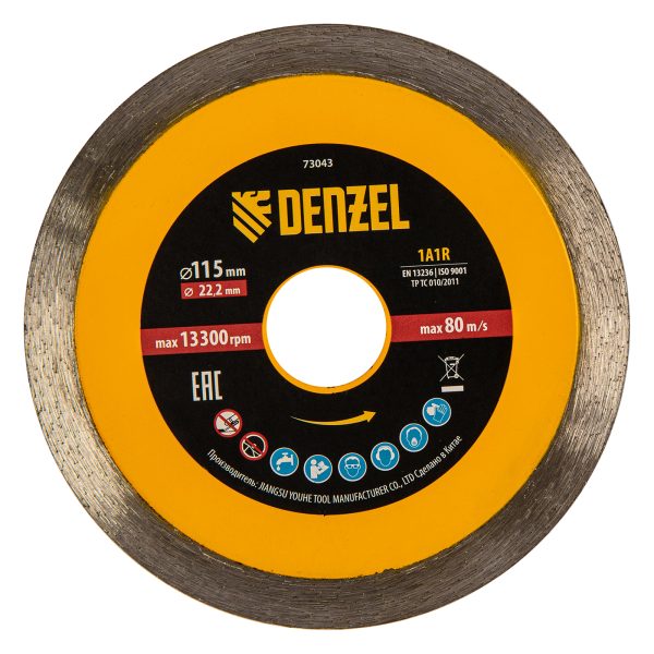 Алмазный диск ТМ Denzel «Сплошной» арт 73043, ф115 х 22,2 мм, предназначен для мокрого резания мрамора, керамогранита и керамическую плитки, камня. Устанавливается на УШМ (болгарку) или плиткорез с посадочным диаметром 22,2 мм. Высокая концентрация алмазов и супертонкая рабочая часть диска обеспечивает идеальную частоту кромок и высокую скорость реза.Диск произведен по технологии горячего прессования с увеличенной шириной режущей кромки (10мм) подходит для профессионального использования и больших объемов работ.