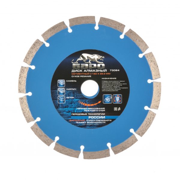 Сегментный алмазный диск Барс 73064 диаметром 180 х 22,2 мм предназначен для сухой резки и устанавливается на УШМ и штроборезы с соответствующим посадочным диаметром. Используется для резки камня, кирпича, бетона и гранита. Позволяет выполнять работы большого объема, подходит для профессионального применения.