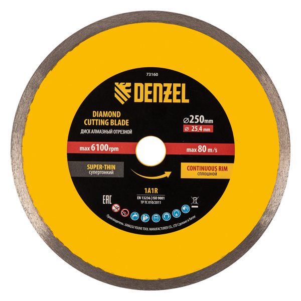 Алмазный диск ТМ Denzel «Сплошной» арт 73160, ф250 х 25,4 мм, предназначен для мокрого резания мрамора, керамогранита и керамическую плитки, камня. Устанавливается на плиткорез или УШМ (болгарку) с посадочным диаметром 25,4 мм. Высокая концентрация алмазов и супертонкая рабочая часть диска обеспечивает идеальную частоту кромок и высокую скорость реза.Диск произведен по технологии горячего прессования с увеличенной шириной режущей кромки (10мм) подходит для профессионального использования и больших объемов работ.