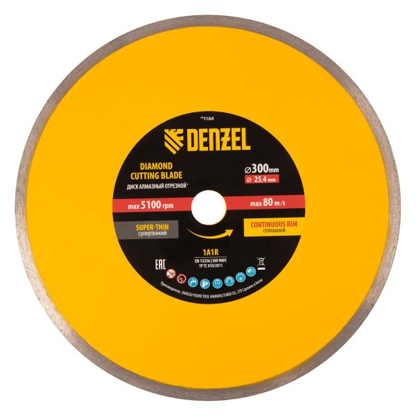 Алмазный диск ТМ Denzel «Сплошной» арт 73164, ф300 х 25,4 мм, предназначен для мокрого резания мрамора, керамогранита и керамическую плитки, камня. Устанавливается на плиткорез или УШМ (болгарку) с посадочным диаметром 25,4 мм. Высокая концентрация алмазов и супертонкая рабочая часть диска обеспечивает идеальную частоту кромок и высокую скорость реза.Диск произведен по технологии горячего прессования с увеличенной шириной режущей кромки (10мм) подходит для профессионального использования и больших объемов работ.