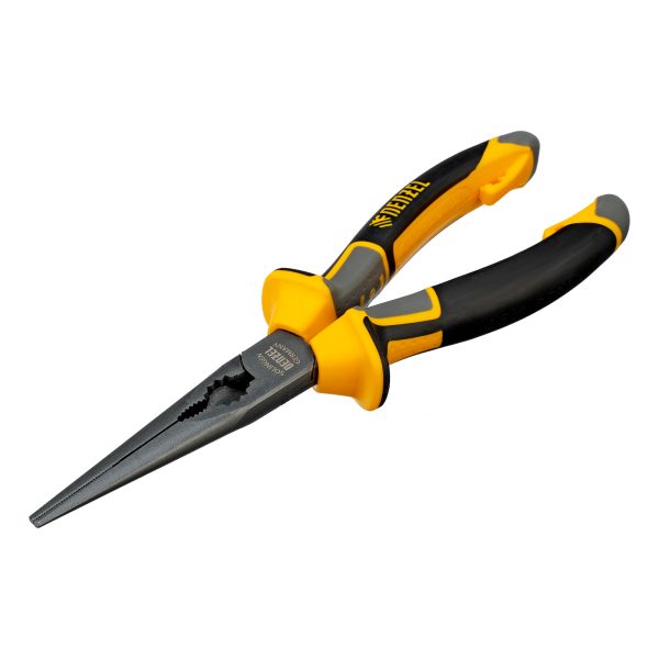 Прямые длинногубцы Denzel 17302 длиной 205 мм, с трехкомпонентными рукоятками, используются для работы с мелкими деталями и крепежом. Позволяют удерживать, сгибать и перекусывать провода или проволоку. Максимальный диаметр перерезаемой мягкой проволоки (алюминиевой, медной, с пределом прочности 220 Н/мм2) составляет 3,9 мм, проволоки средней жесткости и гвоздей (750 Н/мм2) — 3,2 мм, жесткой (1800 Н/мм2) — 2,2 мм. Инструмент оптимален для манипуляций в ограниченном пространстве. Ровные насечки на зажимных частях обеспечивают надежный захват и удержание деталей. Длинногубцы будут полезны во время проведения электромонтажных работ, ремонта оргтехники, техобслуживания автомобиля, пригодятся также в быту.