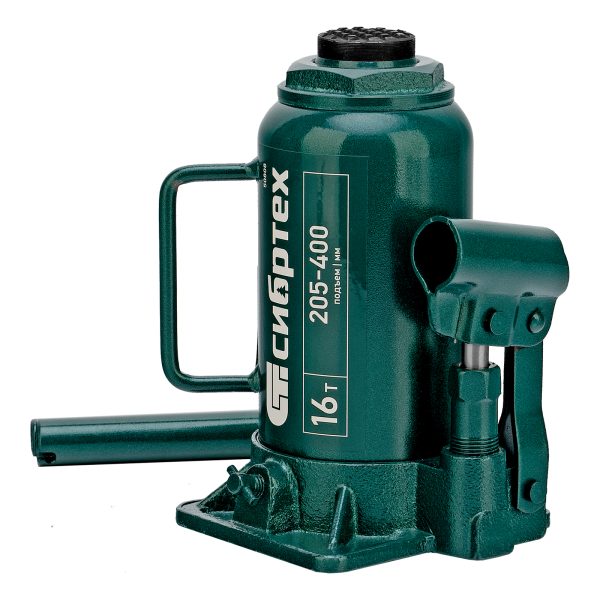 Домкрат гидравлический бутылочный Сибртех 50808 предназначен для подъема грузов массой до 16 т на высоту от 205 до 400 мм. Не требует больших усилий от пользователя и значительно облегчает рабочий процесс. Домкрат будет полезен при проведении техобслуживания машины в автосервисе или гараже.
