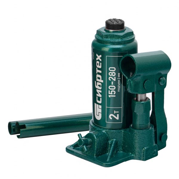 Домкрат гидравлический бутылочный Сибртех 50800 предназначен для подъема грузов массой до 2 т на высоту от 150 до 280 мм. Не требует больших усилий от пользователя и значительно облегчает рабочий процесс. Домкрат будет полезен при проведении техобслуживания машины в автосервисе или гараже.