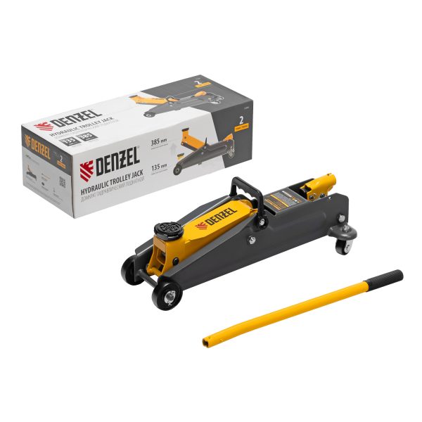 Гидравлический подкатной домкрат Denzel 51230 с высотой подхвата 135 мм предназначен для плавного подъема грузов массой до 2 т на высоту до 385 мм. Домкрат пригодится владельцам легковых автомобилей со стандартным клиренсом.