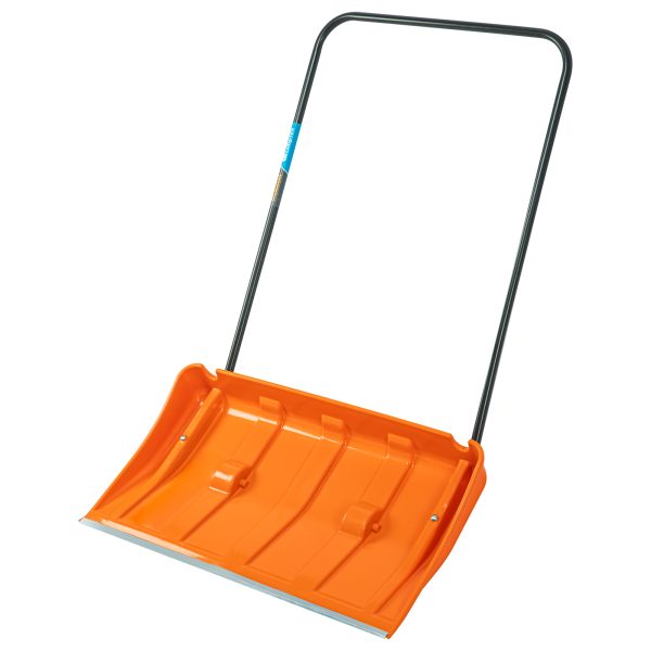 - Комфортная работа — движок общей длиной 1280 мм удобен для пользователей среднего роста, на нижней поверхности ковша имеются колеса, упрощающие перемещение инструмента.