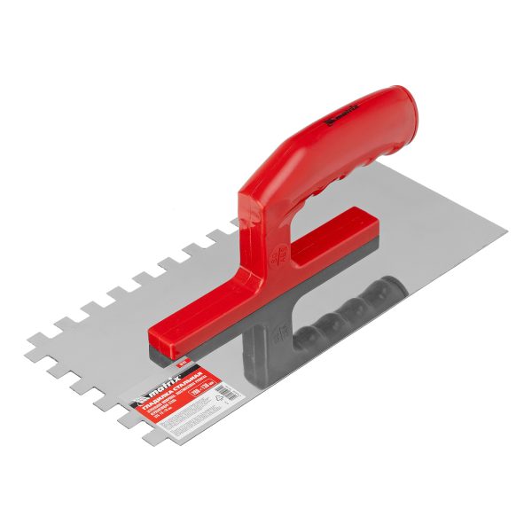 Гладилка Matrix 86783 размером 280 x 130 мм, из нержавеющей стали, с зубьями 10 x 10 мм, зеркальной полировкой и пластмассовой ручкой, пригодится любителям и частным мастерам при проведении ремонтных работ. Она позволяет равномерно наносить строительные растворы и плиточный клей на подготовленные под отделку поверхности.