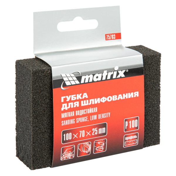 Мягкая губка для шлифования Matrix 75703 размером 100 х 70 х 25 мм, со среднезернистым абразивом P 100, используется для обработки деревянных, металлических, пластмассовых и шпатлеванных поверхностей, оптимальна для чистовой обработки. Позволяет удалять старые лакокрасочные покрытия и ржавчину, применяется при ремонте, строительстве, производстве мебели, кузовных работах, а также в быту. Губка покрыта абразивным слоем с 4-х сторон, поэтому прослужит долго.
