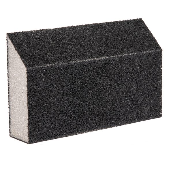 - Благодаря скошенному краю губки ею можно обрабатывать узкие места, углы, пазы и труднодоступные поверхности.