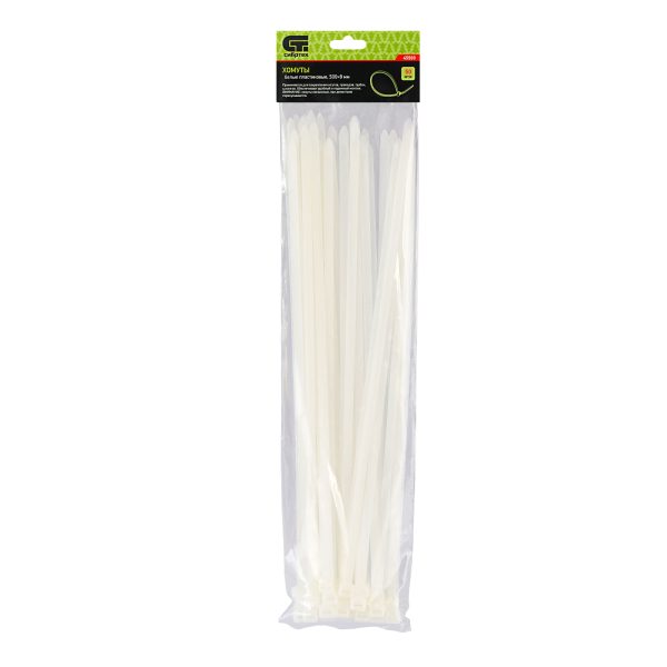 Белые пластиковые хомуты Сибртех 45589, 500 х 8 мм, 50 шт. в упаковке, используются для стяжки кабелей, закрепления трубок, шлангов, рекламных конструкций, а также для упаковки различных предметов. Пригодятся во время прокладки электрических и локальных вычислительных сетей, ремонта компьютерной техники, оформлении торговых стендов, комплектовании товара, будут также полезны дома, на даче и в гараже.