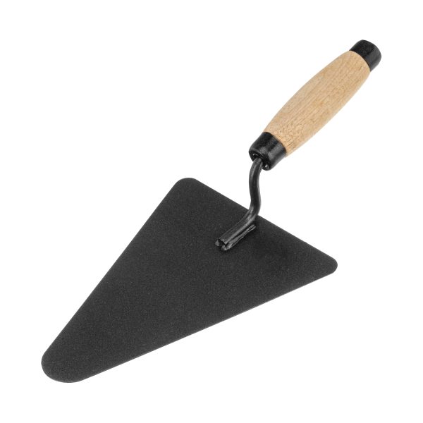 Стальная кельма бетонщика 86220 с деревянной усиленной ручкой — это незаменимый инструмент для отмеривания, замешивания цементных растворов и кладки кирпича. Полотном в форме закругленного треугольника с прямыми гранями удобно удалять излишки раствора и работать в труднодоступных местах.