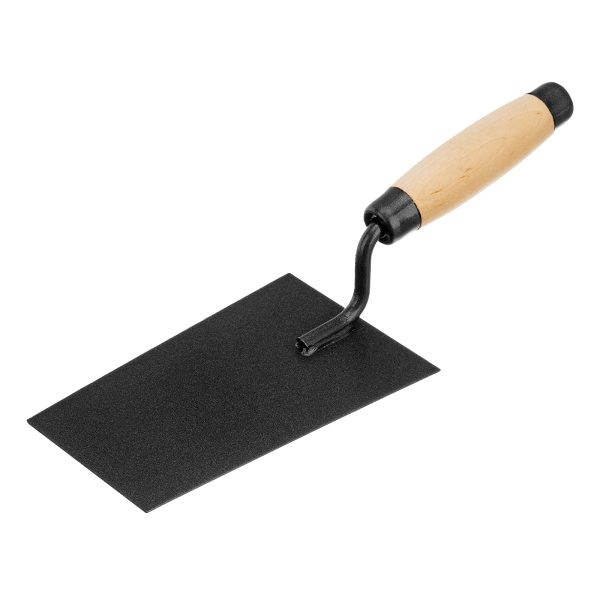 Стальная кельма отделочника 86241 с деревянной усиленной ручкой облегчает выполнение широкого спектра задач: размешивания, отмеривания, накидывания, нанесения и выравнивания растворов. Она будет полезна при осуществлении работ по отделке помещений. За счет полотна-трапеции с прямыми гранями удобно наносить плиточный клей и убирать его излишки.