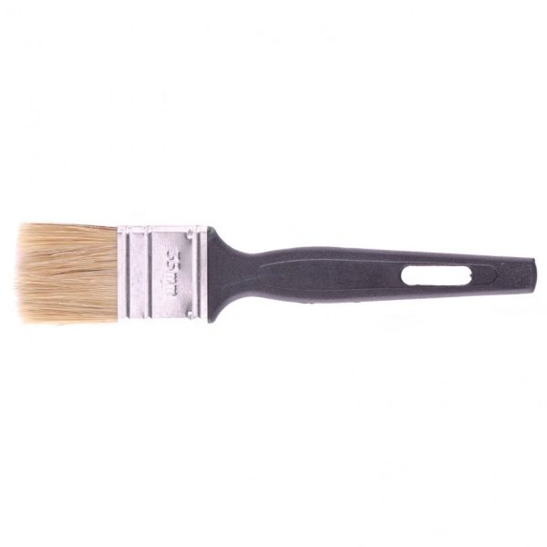 - Ширина 35 мм — кисть оптимальна для окрашивания углов, мелких деталей, плинтусов и рам.