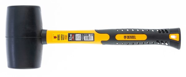 Резиновая киянка Denzel из черной резины с фибергласовой рукояткой,32 oz (910 г), применяется при проведении монтажных, сборочных и кузовных работ, укладке плитки. Резиновый боек обладает высокими амортизирующими свойствами. Рукоятка обладает высоким рабочим ресурсом, т.к. выполнена из фибергласа с обрезиненным покрытием, который обеспечивает надежный хват без проскальзывания. Киянка имеет высокий показатель прочности, устойчива к воздействию внешней агрессивной среды и хорошо поглащает вибрацию, поэтому подходит для профессионального применения.