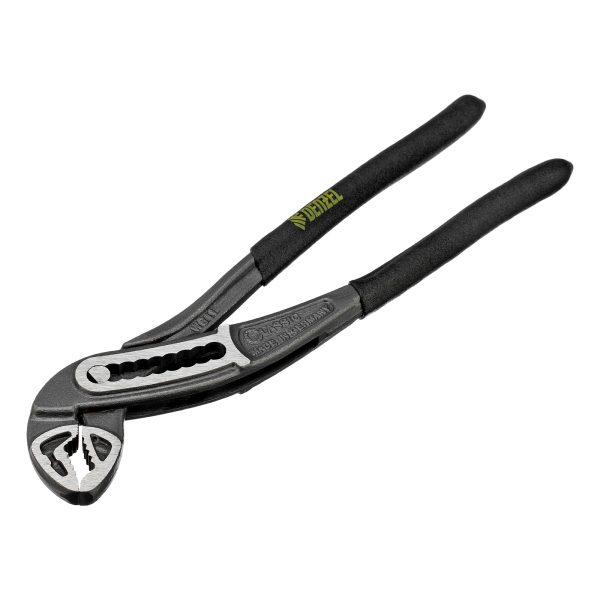Переставные клещи Denzel 17901 длиной 180 мм, с обливными рукоятками, предназначены для фиксации и вращения деталей и заготовок различной формы. Подходят для захвата фитингов, труб, крепежных элементов. Инструмент используется при проведении ремонтных, монтажных, сантехнических работ.