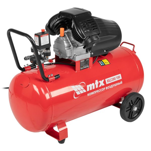 Масляный воздушный компрессор MTX KK-2200/100 58033 мощностью 2,2 кВт, с прямым приводом, оснащен ресивером объемом 100 л, рассчитан на давление до 8 бар и обеспечивает производительность на уровне 350 л/мин. Предназначен для обеспечения работоспособности пневматического инструмента: гайковерта, шлифовальной машины, шуруповерта, краскораспылителя и т.д. Мощный и производительный компрессор будет полезен на строительной площадке, в гараже, на предприятии автосервиса.
