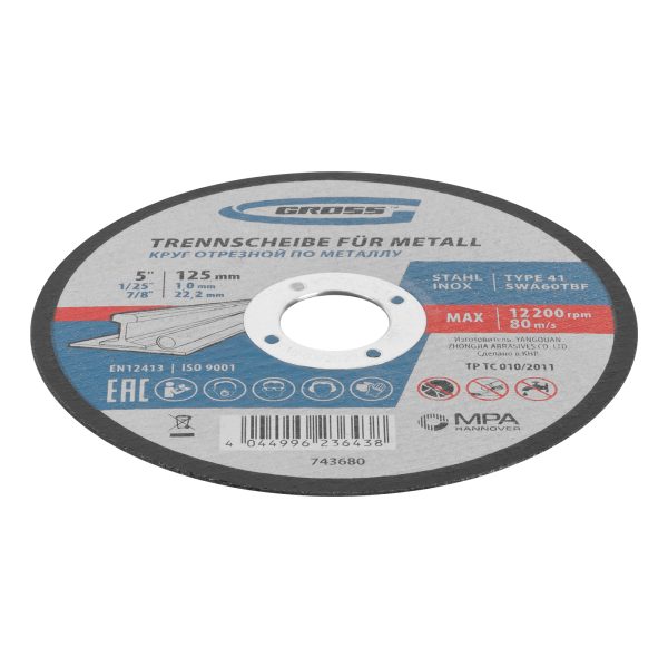 Отрезной круг по металлу Gross SWA60TBF 743680 размером 125 х 1,0 х 22,2 мм, 10 шт. в металлической банке, предназначен для интенсивного сухого реза нержавеющих легированных и углеродистых сталей, алюминия, чугуна. Устанавливается на УШМ соответствующего типоразмера. Крупнозернистый абразив F60 в сочетании с толщиной круга 1 мм обеспечивают высокую скорость и точность реза. Надежный и производительный, круг выдерживает высокие нагрузки, не требует частой замены и подходит для профессиональной эксплуатации.