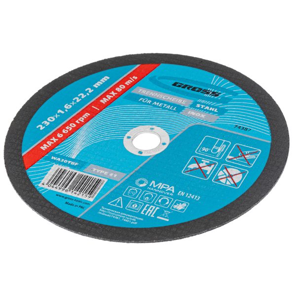 Отрезной круг по металлу Gross WA46TBF 74387 размером 230 х 1,6 х 22,2 мм рассчитан на интенсивный сухой рез углеродистых и нержавеющих легированных сталей, алюминия, чугуна. Устанавливается на УШМ соответствующего типоразмера и не требует частой замены, подходит для профессиональной эксплуатации с высокими нагрузками.