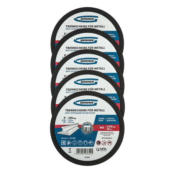 Отрезной круг по металлу Gross WA36TBF 743890 размером 230 х 2,0 х 22,2 мм, 5 шт. в металлической банке, предназначен для интенсивного сухого реза нержавеющих легированных и углеродистых сталей, алюминия, чугуна. Устанавливается на УШМ соответствующего типоразмера. Крупнозернистый абразив F36 в сочетании с толщиной круга 2 мм обеспечивают высокую скорость и точность реза. Надежный и производительный, круг выдерживает высокие нагрузки, не требует частой замены и подходит для профессиональной эксплуатации.