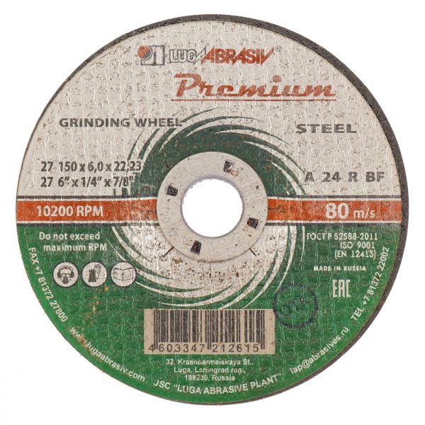 Зачистной круг по металлу Луга ПРЕМИУМ 73416, 150 х 6,0 х 22,2 мм, устанавливается на фланец болгарок, работающих с оснасткой диаметром 150 мм. Предназначен для сухой шлифовки, используется для зачистки стальных деталей — удаления коррозии, заусенцев, окалины, обработки сварных швов. Диск успешно справляется с этими задачами благодаря абразиву зернистостью F24. Благодаря профилю с утопленным центром круг работает с высокой эффективностью.