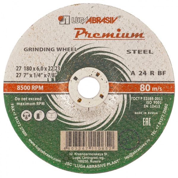 Зачистной круг по металлу Луга ПРЕМИУМ 73421, 180 х 6,0 х 22,2 мм, устанавливается на фланец болгарок, работающих с оснасткой диаметром 180 мм. Предназначен для сухой шлифовки, используется для зачистки стальных деталей — удаления коррозии, заусенцев, окалины, обработки сварных швов. Диск успешно справляется с этими задачами благодаря абразиву зернистостью F24. Благодаря профилю с утопленным центром круг работает с высокой эффективностью.