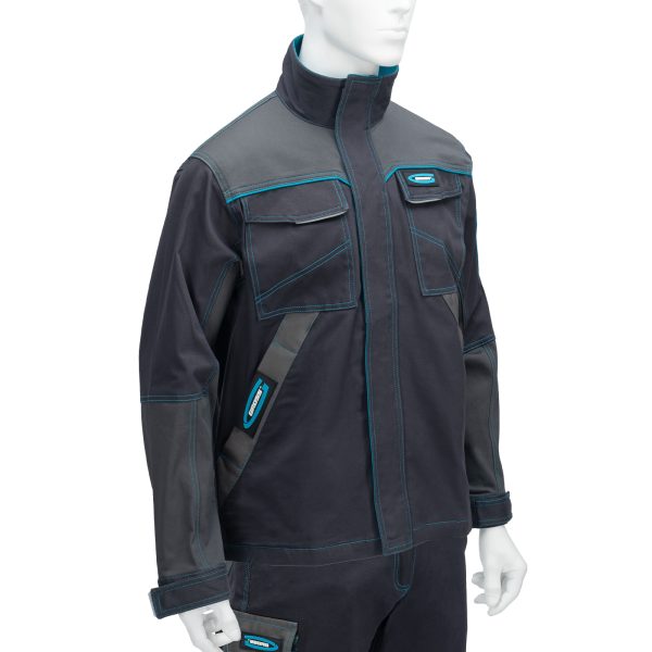 Профессиональная рабочая куртка Gross 90435 размера XXL защищает пользователя от общих производственных загрязнений, нетоксичной пыли, ветра и незначительных механических воздействий. Рассчитана на рост 184-190 см и предназначена для использования в теплое время года или в отапливаемом помещении. Куртка изготовлена из ткани с 97-процентным содержанием хлопка и 3-процентным содержанием спандекса. За счет наличия хлопковых волокон в составе ткань прекрасно пропускает воздух и приятна на теле, а спандекс делает ее более эластичной, поэтому в куртке удобно работать. Одежда выполнена в практичном темно-сером цвете.