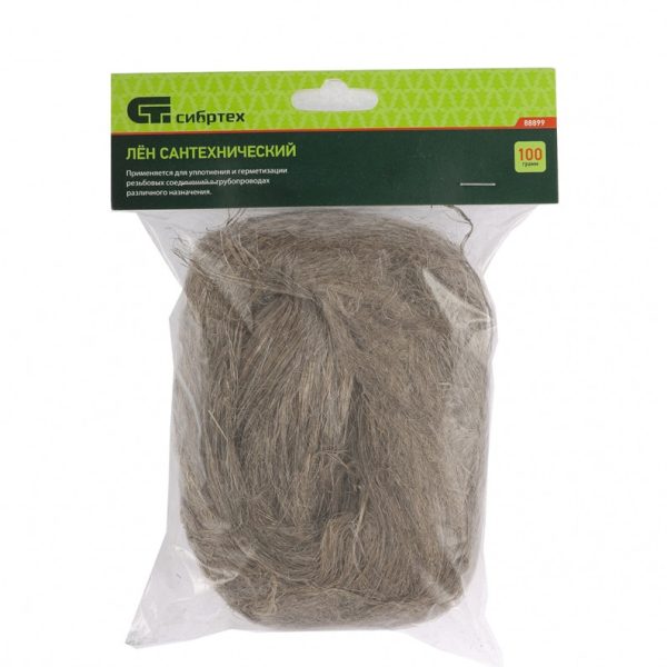 Лен сантехнический Сибртех 88899, 100 г, используется в качестве уплотнителя резьбовых соединений. За счет термостойкости легко выдерживает температуру до 160 °С, поэтому пригодится при монтаже паровых систем и тепло-водоснабжения. Лен не разрушается в процессе эксплуатации, благодаря чему обеспечивает надежную герметизацию.