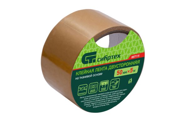 Лента клейкая двусторонняя, 50 мм х 5 м, на тканевой основе Сибртех