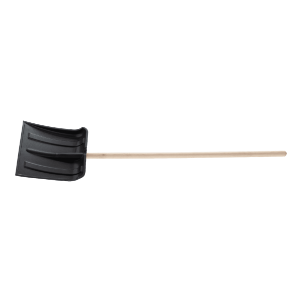 Пластиковая лопата 61574522 размером 350 х 350 х 1445 мм, без планки, с деревянным черенком, облегчает уборку снега. С ее помощью можно очистить дорожки в загородном доме, выезд из гаража и т.д. Углубленный ковш с высокими бортами вмещает большое количество снега. С облегченной лопатой весом 770 г легко справится женщина или подросток. ,Преимущества,Морозостойкость — ковш выполнен из ударопрочного полипропилена и выдерживает температуру до -30 ?.,Прочность — дополнительные ребра жесткости повышают устойчивость ковша к нагрузкам.,Комфортная эксплуатация — деревянный черенок удобно лежит в руках, а длина инструмента 1445 мм позволяет снизить нагрузку на спину.