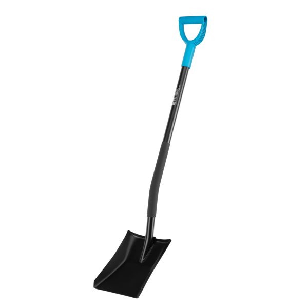 - Комфортная работа — за счет резиновой накладки черенок не выскальзывает из рук, лопатой удобно пользоваться даже в холодное время года.