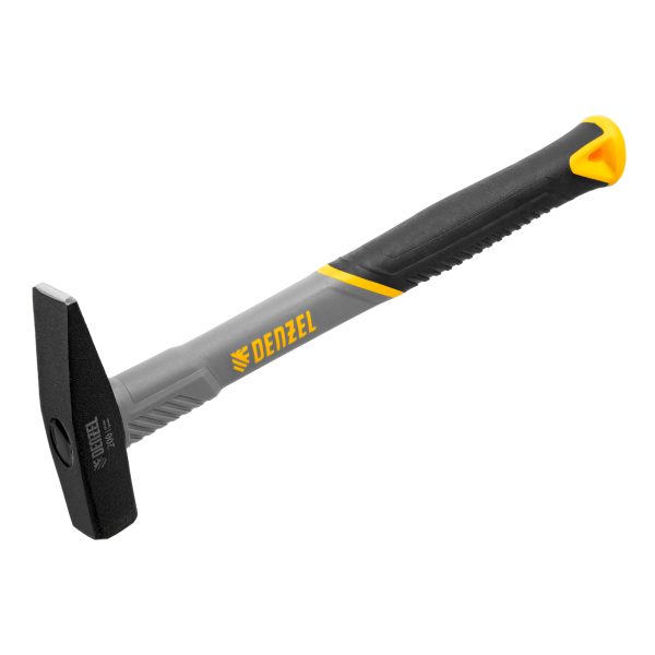 Молоток слесарный кованый Denzel 10482 с квадратным бойком весом 200 г и трехкомпонентной фибергласовой рукояткой с TPR-покрытием предназначен для работы с металлическими заготовками, забивания гвоздей, штырей, дюбелей и другого крепежа. Рукоятка выполнена в эксклюзивном дизайне. Молоток рекомендован для профессионального и домашнего применения.