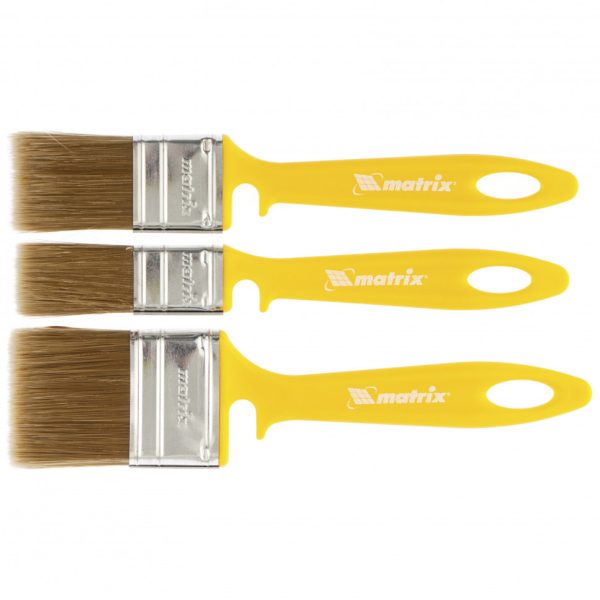 Набор Matrix Color Line «ЛАКИ» 83367 включает флейцевые кисти шириной 25, 35 и 50 мм, использующиеся для отделочных работ с применением лаков на акриловой, водной и натуральной основе. Ими удобно лакировать небольшие участки. Искусственная щетина отличается повышенной упругостью, поэтому кисти обеспечивают высокое качество работ.