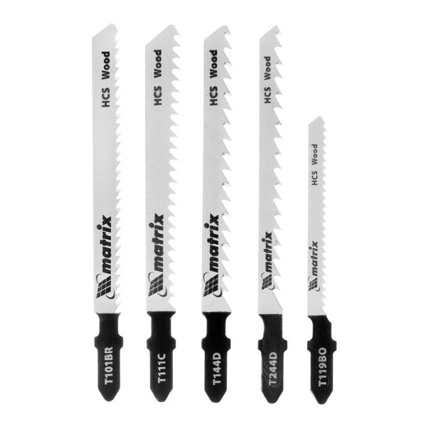 Набор полотен для электролобзика по дереву Matrix 78250 из 5 шт. предназначен для распиливания древесины, фанеры, ДСП, ламината и пластика различной толщины. Подходит как для грубого, так и точного чистого распила. Пилки устанавливают на электролобзики с зажимом под Т-образный хвостовик. Набор пригодится для выполнения столярных работ, будет полезен во время занятий творчеством.