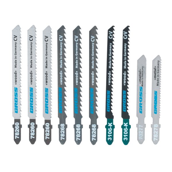 Универсальный набор полотен для электролобзика Gross DIY 78295, 10 шт. в в пластиковом кейсе, предназначен для чистого и быстрого прямолинейного распила деревянных и металлических материалов. Каждое полотно отличается высоким качеством, поэтому набор прослужит долгое время даже в условиях интенсивной эксплуатации.