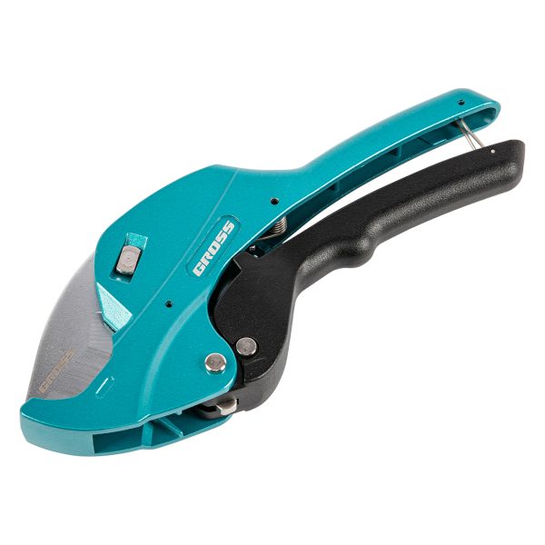 Универсальные ножницы для резки изделий из ПВХ Gross 78426 с функцией автоматического раскрытия применяются для работы с пластиковыми трубами диаметром до 42 мм, а также для разрезания профилей, плинтусов, галтелей, реек, планок, резиновых шлангов и других предметов. Прямой нож инструмента позволяет резать плоские заготовки. Ножницы пригодятся для выполнения сантехнических и отделочных работ., , Преимущества, Устойчивость к износу — режущее полотно изготовлено из стали SK-85., Защита от коррозии — лезвие никелировано, на корпус нанесено порошковое покрытие., Высокая эффективность — механизм автоматического раскрытия позволяет выполнять работу быстрее, не прикладывая больших усилий., Комфортная работа без ощущения усталости — храповой механизм минимизирует прикладываемые усилия., Безопасное хранение и транспортировка — рукоятки можно заблокировать в сведенном положении., , Для корректной работы инструмента, чтобы предотвратить перекос лезвия относительно ПВХ-трубы, рекомендуется, чтобы отрезаемая часть была больше или равна внешнему диаметру ПВХ-трубы. В противном случае может возникнуть перекос лезвия, что также может привести к поломке лезвия/инструмента.