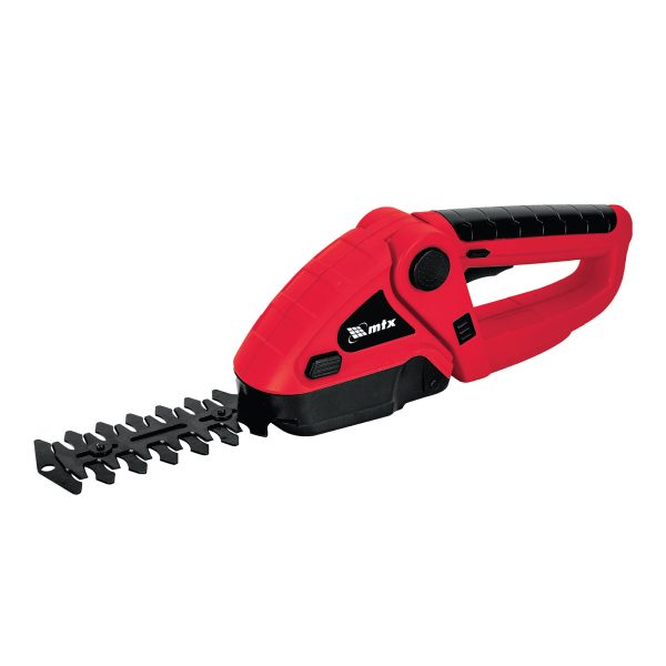 Аккумуляторные ножницы-кусторез MTX GSM-3 59480 работают от аккумулятора Li-Ion номинальным напряжением 3,6 В и емкостью 1,5 А·ч. Предназначены для срезания травы, обрезки кустов и живых веток диаметром до 8 мм. Подходят для ухода за живой изгородью. Ширина среза в режиме ножниц составляет 80 мм, в режиме кустореза — 120 мм, что позволяет эффективно решать поставленные задачи. Инструмент не требует подключения к стационарному источнику питания и может использоваться на любом расстоянии от дома. Пригодится владельцам дачных участков.