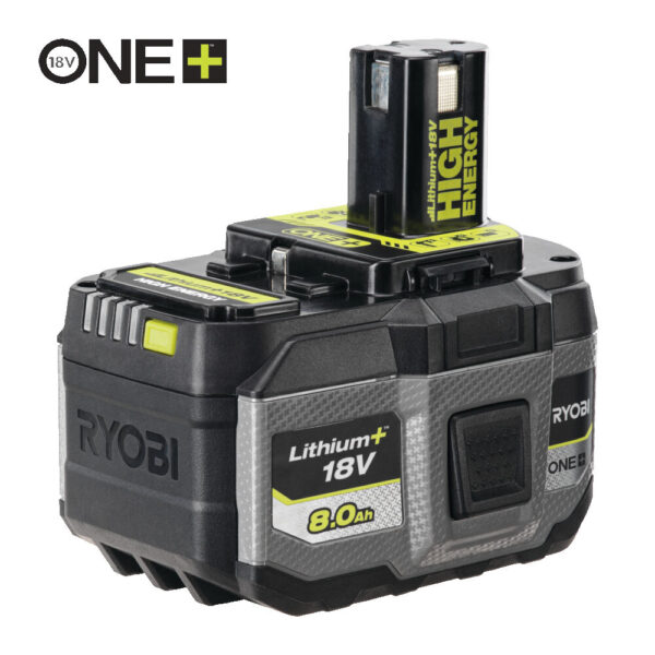 - Мощный 8.0Ач HIGH ENERGY аккумулятор увеличивает продолжительность работы до трех раз а мощность до 20% по сравнению с аккумуляторами Ryobi® Lithium предыдущего поколения.