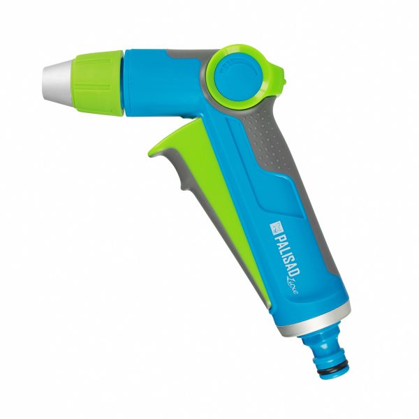 Металлический пистолет-распылитель Palisad LUXE 65798 с курком и регулируемой форсункой обеспечивает подачу жесткой струи воды, конусное распыление и работу в режиме «туман», поэтому позволяет быстро поливать большие участки. Также с его помощью можно очистить дорожки, промыть садовый инвентарь и выполнить другие работы на загородном участке. Пистолет пригодится дачникам и работникам коммунальных служб.