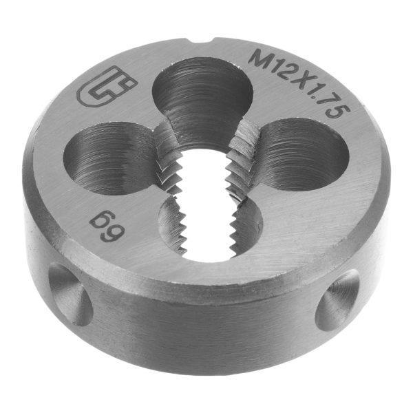 - Надежность и долговечность — плашка изготовлена из инструментальной стали 9XC, режущие кромки закалены до твердости 60 HRC в соответствии с ГОСТом.