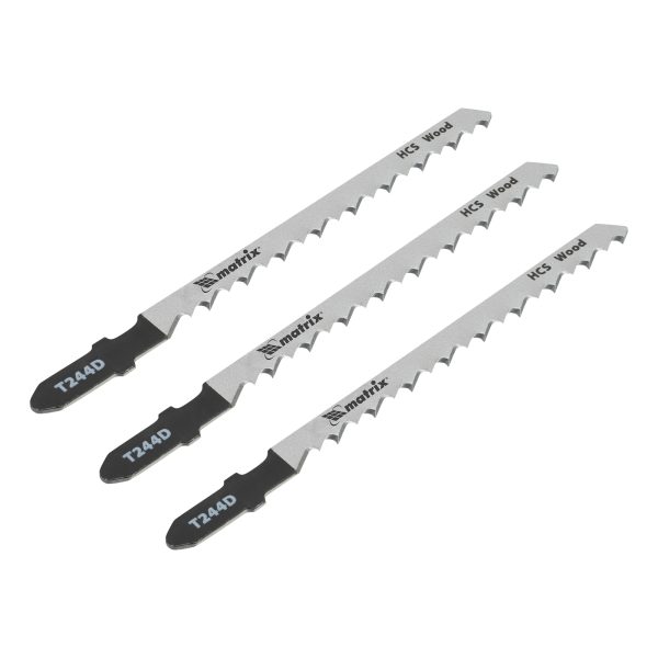 Полотна для электролобзика Matrix 78215, T244D, 75 х 4 мм, из стали HCS, 3 шт. в упаковке, — набор оснасток для работ по дереву толщиной 5-60 мм. Также эффективны при распиловке фанеры, ДСП, ДВП и пластика. Позволяют выполнять криволинейные пропилы и подходят для всех электролобзиков с зажимами под Т-образный хвостовик. Будут полезны во время ремонта, при производстве и сборке мебели, а также в быту.