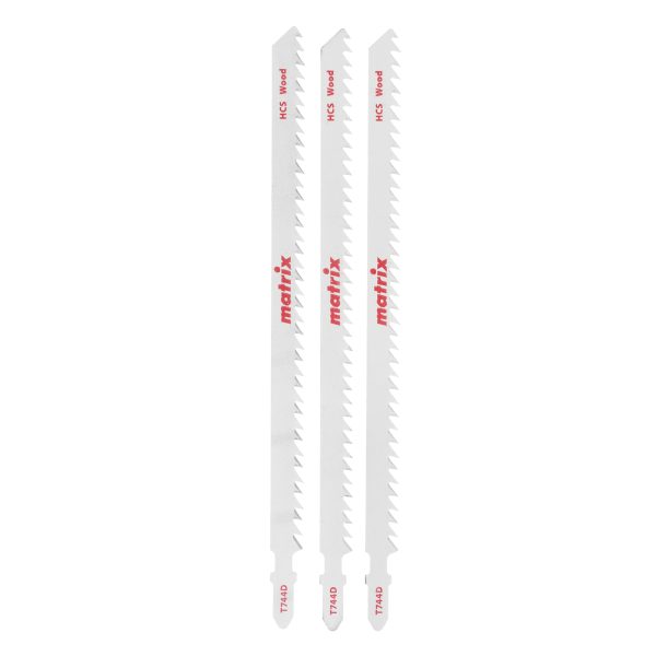 Полотна для электролобзика по дереву T744D Matrix 78223 с шагом зубьев 4 мм, из стали HCS, 3 шт. в упаковке, имеют рабочую длину 155 мм и предназначены для грубой быстрой распиловки древесины, пиломатериалов, ДСП толщиной от 5 до 135 мм, а также пластика и фанеры. Благодаря Т-образному хвостовику полотна совместимы с большинством электролобзиков ведущих производителей. Подходят для профессионального использования, будут полезны и в быту.