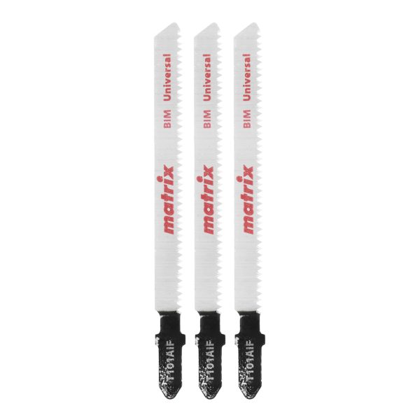 Полотна для электролобзика T101AIF Matrix 78230, биметаллические (Bimetal), с рабочей длиной 72 мм и шагом зубьев 1,7 мм, 3 шт. в упаковке, предназначены для выполнения работ по дереву толщиной 2-30 мм с покрытием, а также для распиловки ламината, полимерных и эпоксидных материалов. Имеют Т-образный хвостовик, поэтому совместимы с большинством современных электролобзиков. Пилки будут полезны во время ремонта помещений, производства и сборки мебели, а также для проведения прочих столярных работ.